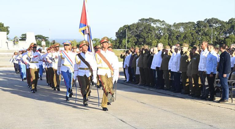 Miguel Díaz-Canel Bermúdez, Primer Secretario del Comité Central del Partido Comunista de Cuba y Presidente de la República, encabezó este domingo el acto político y ceremonia militar en el mausoleo de El Cacahual, al cumplirse el aniversario 129 de la caída en combate del Lugarteniente General Antonio Maceo Grajales y su ayudante, el capitán Panchito Gómez Toro, precisaron fuentes de la Presidencia.